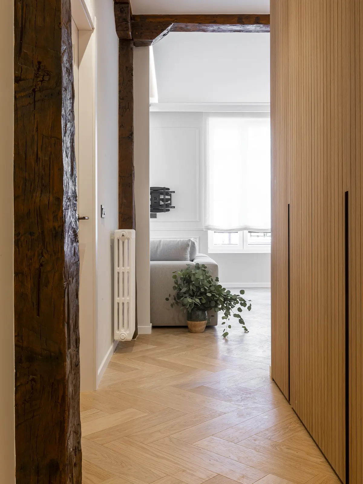 INSTALACIONES: Para mejorar su eficiencia energética y evitar pérdidas de calor, se ha incorporado un trasdosado en la fachada para crear una envolvente térmica. de igual manera, se sustituyeron las carpinterías exteriores por perfiles con doble cámara y rpt. se recuperaron los radiadores antiguos de fundición.