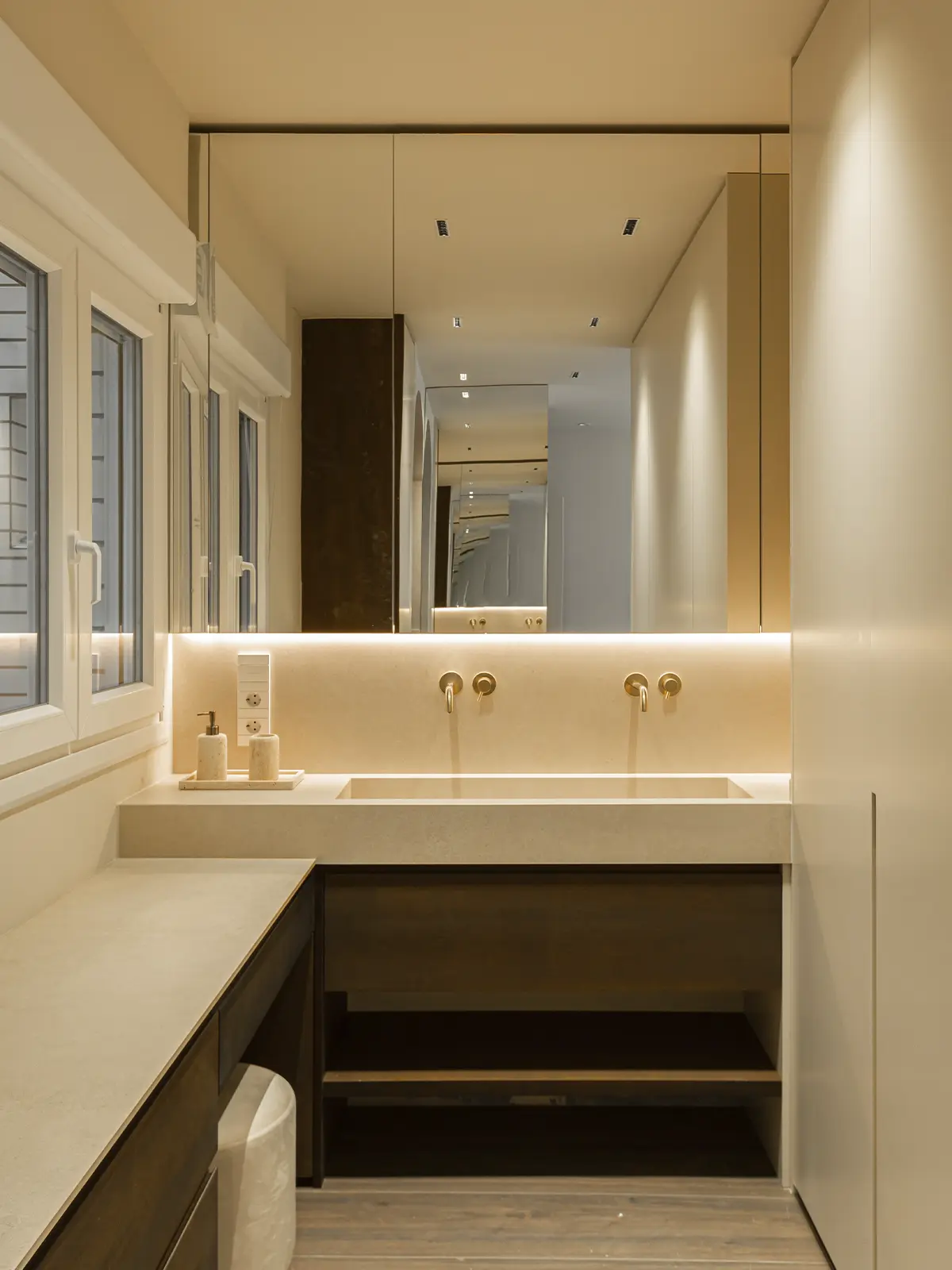 INSTALACIONES: Para mejorar la eficiencia energética de la vivienda se sustituye toda la carpintería exterior con perfiles con doble cámara. la iluminación se realiza indirecta mayoritariamente, en techos y paredes.