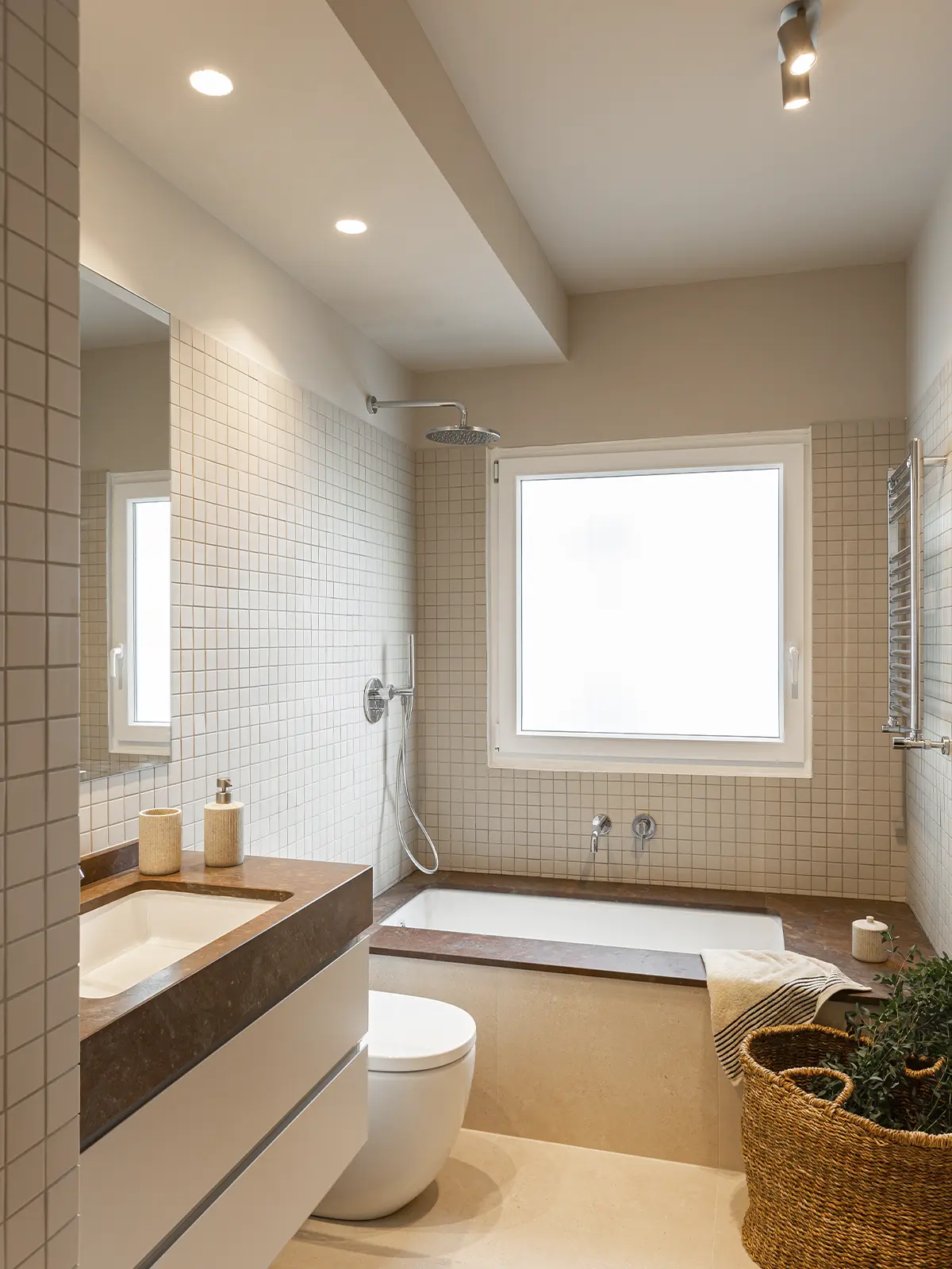 INSTALACIONES: Para mejorar la eficiencia energética de la vivienda se sustituye toda la carpintería exterior con perfiles con doble cámara y se aísla el techo. la iluminación se realiza  indirecta mayoritariamente, en techos y paredes.