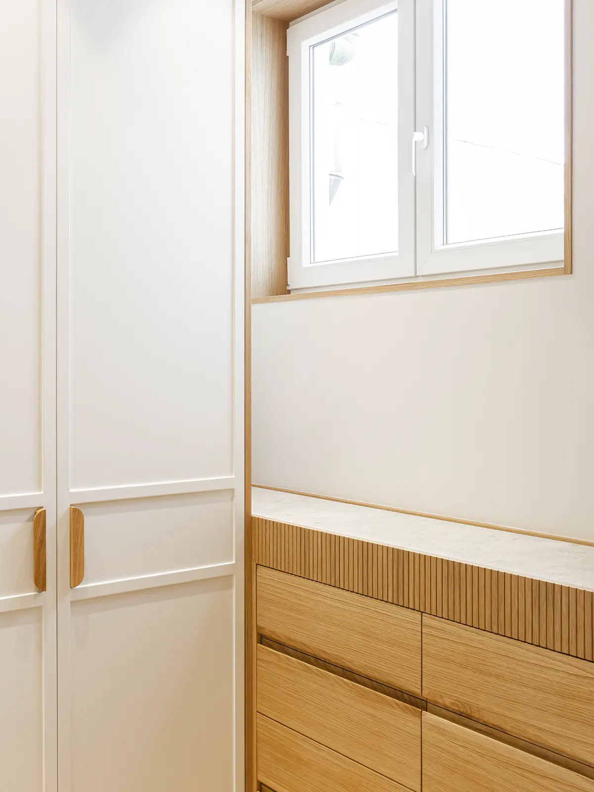 Reforma en luminosa vivienda con Terraza, con gran valor de carpintería y ebanistería en Proyecto.